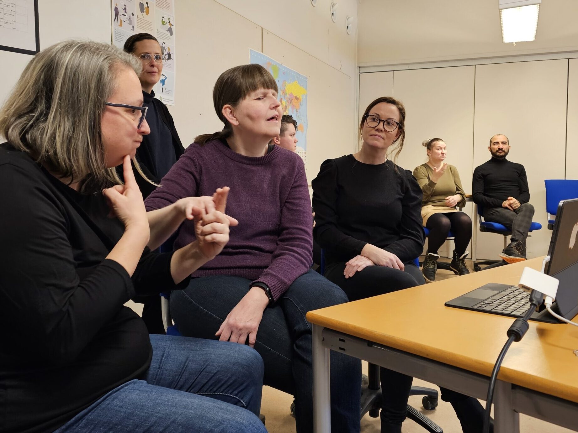 Tolkutbildning för döva Tolkutbildning för döva Utbildningens mål är bland annat att få ökad kunskap om tolkning, etik och kommunikation samt att utveckla tolkningsprocessen med olika kommunikativa strategier. Tio fysiska träffar under utbildningen. Praktik ingår i utbildningen. Vill du arbeta med människor? hitta flera kommunikationssätt i tolksituationer? utveckla dig i din yrkesroll? Då passar den här utbildningen dig! Kurslängd: 2 år, halvtid Målgrupp: Personer med svenskt teckenspråk som sitt förstaspråk Plats: Distans Ansökan, år 2024-2026: Stängd Läs mer