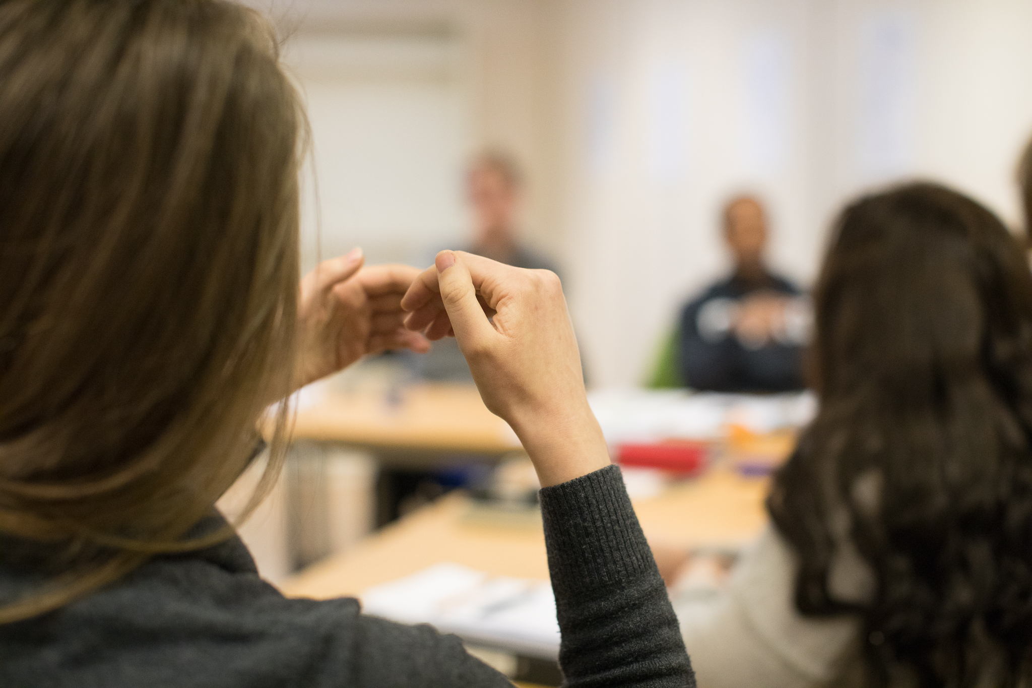 Teckenspråkskurser på distans vår 2025 Teckenspråkskurser på distans vår 2025 Vi erbjuder distanskurser i två olika nivåer: – nybörjarnivå utan några förkunskaper – fortsättningskurs för dig som kan lite mera teckenspråk Studierna sker på distans och du har kontakt med din teckenspråkslärare via e-post eller livechatt. Vid kursstarten och kursavsluten träffas alla deltagare och lärare två dagar på skolan för undervisning. Då får du också ta del av skolans teckenspråkiga miljö och använda dina kunskaper praktiskt. Kurslängd: 15 veckor Målgrupp: Personer som vill lära sig teckenspråk eller utveckla sitt teckenspråk Plats: Distans och två träffar på Västanvik Anmälan för vår 2025: Öppen Läs mer